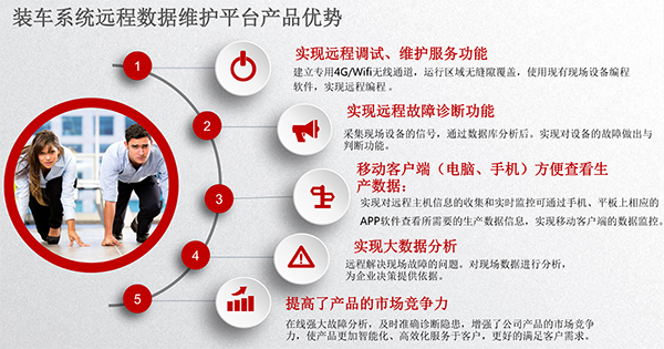 裝車站(zhan)遠程維護平台(tái)能夠實現現場(chǎng)設備數據的監(jian)控、監測。能夠實(shí)現PLC程序的下載(zai)、上傳、在線修改(gai)的功能,通過平(píng)台對現場設備(bèi)的數據進行采(cai)集,經過數據分(fen)析對設備的故(gù)障進行預判斷(duàn),有效的減少産(chan)品的故障率。遠(yuǎn)程即可服務現(xian)場工業設備,讓(rang)安全通訊更簡(jian)單,降低出差成(cheng)本,節省維保時(shi)間。