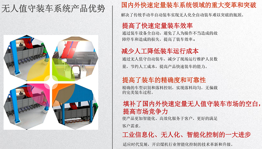 全自動裝車及無(wu)人值守裝車系統(tǒng)是在現有自動化(huà)定量裝車系統基(jī)礎上對信号檢測(cè)和數據處理進行(háng)進一步的技術優(yōu)化和技術創新,以(yi)實現裝車現場的(de)無人值守自動裝(zhuang)車控制,系統可根(gēn)據對現場裝車條(tiao)件的預判實現自(zi)動啓停裝車系統(tǒng),并擁有強大的數(shu)據處理服務器可(ke)實現對裝車站内(nèi)各個關鍵點的自(zi)動檢測與數據處(chu)理,實現裝車站的(de)自控制、自學習,無(wu)人幹預的自動完(wán)成快速定量裝車(chē)工作。